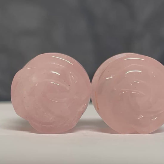 Organic Rose Quartz Carved Stone Plugs by the pair