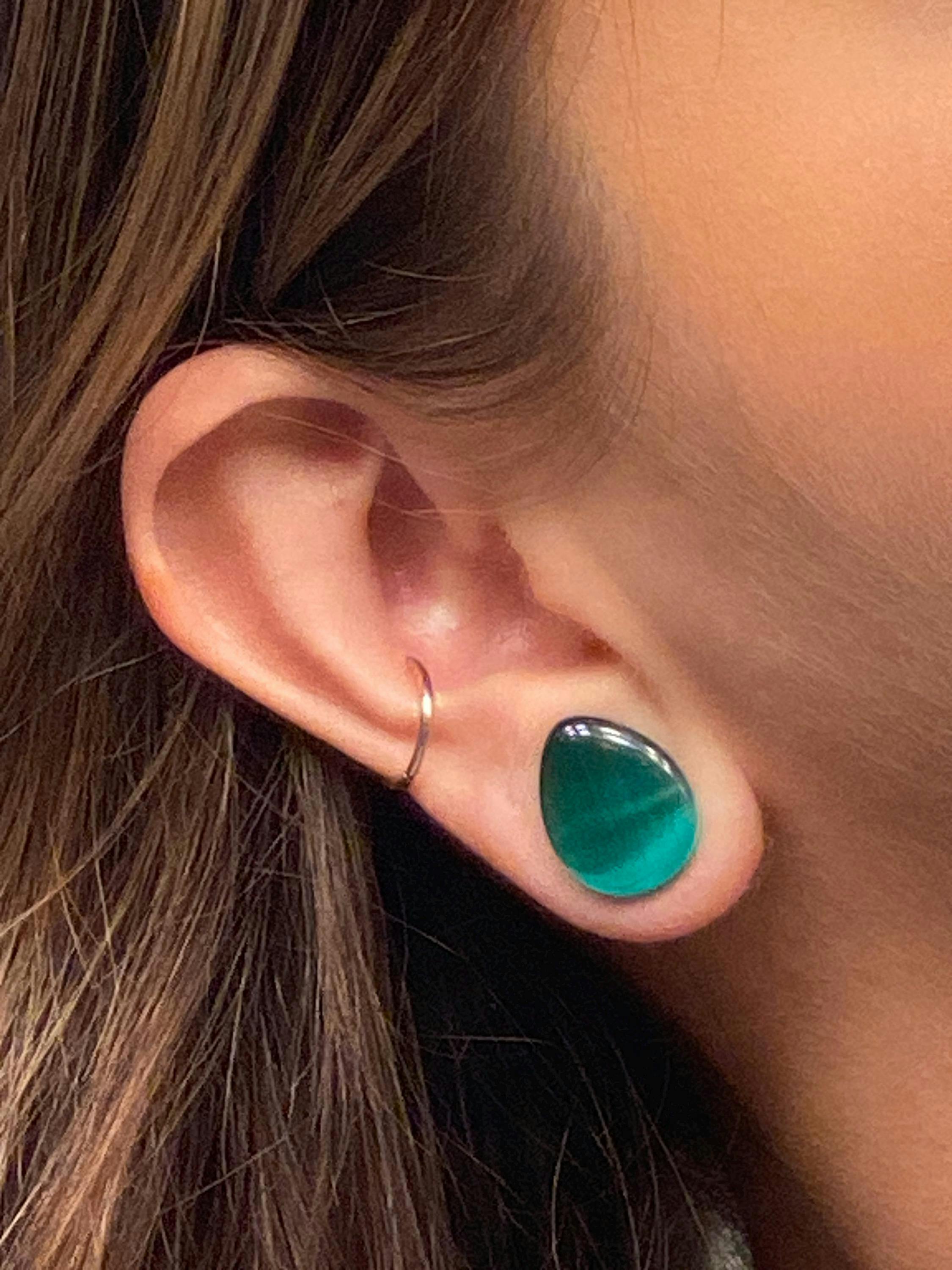 Deep Green Cat Eye Stone Double Flare Teardrop Plugs