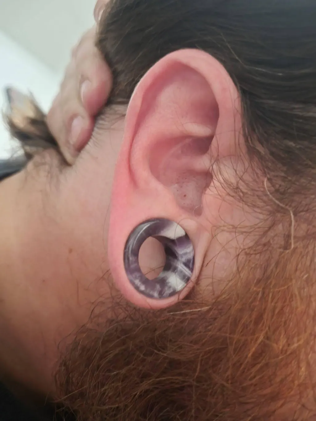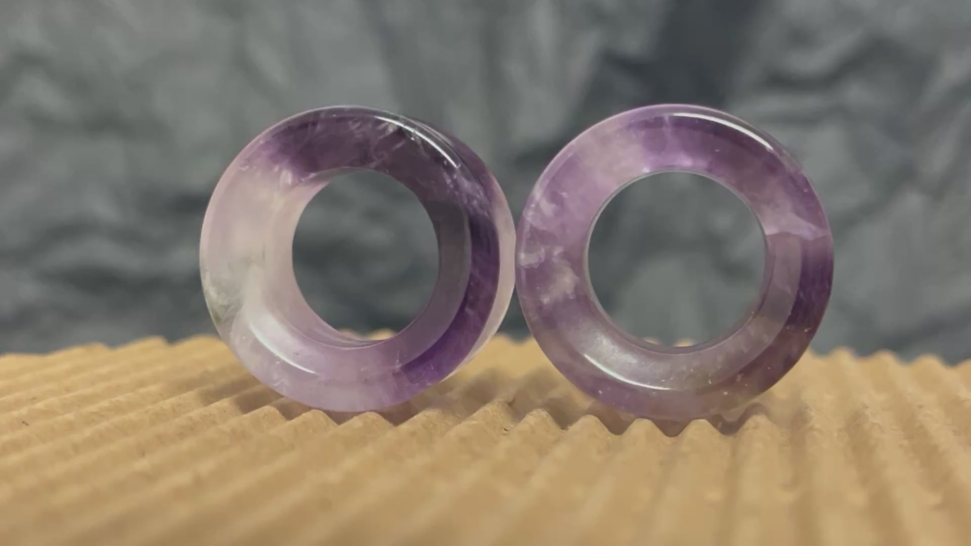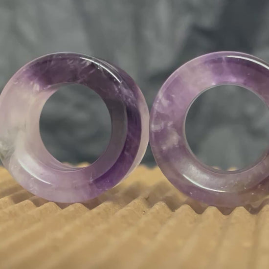 PAIR of Stunning Organic Amethyst Stone Double Flare Tunnels - Gauges 2g up to 1" (25mm)
