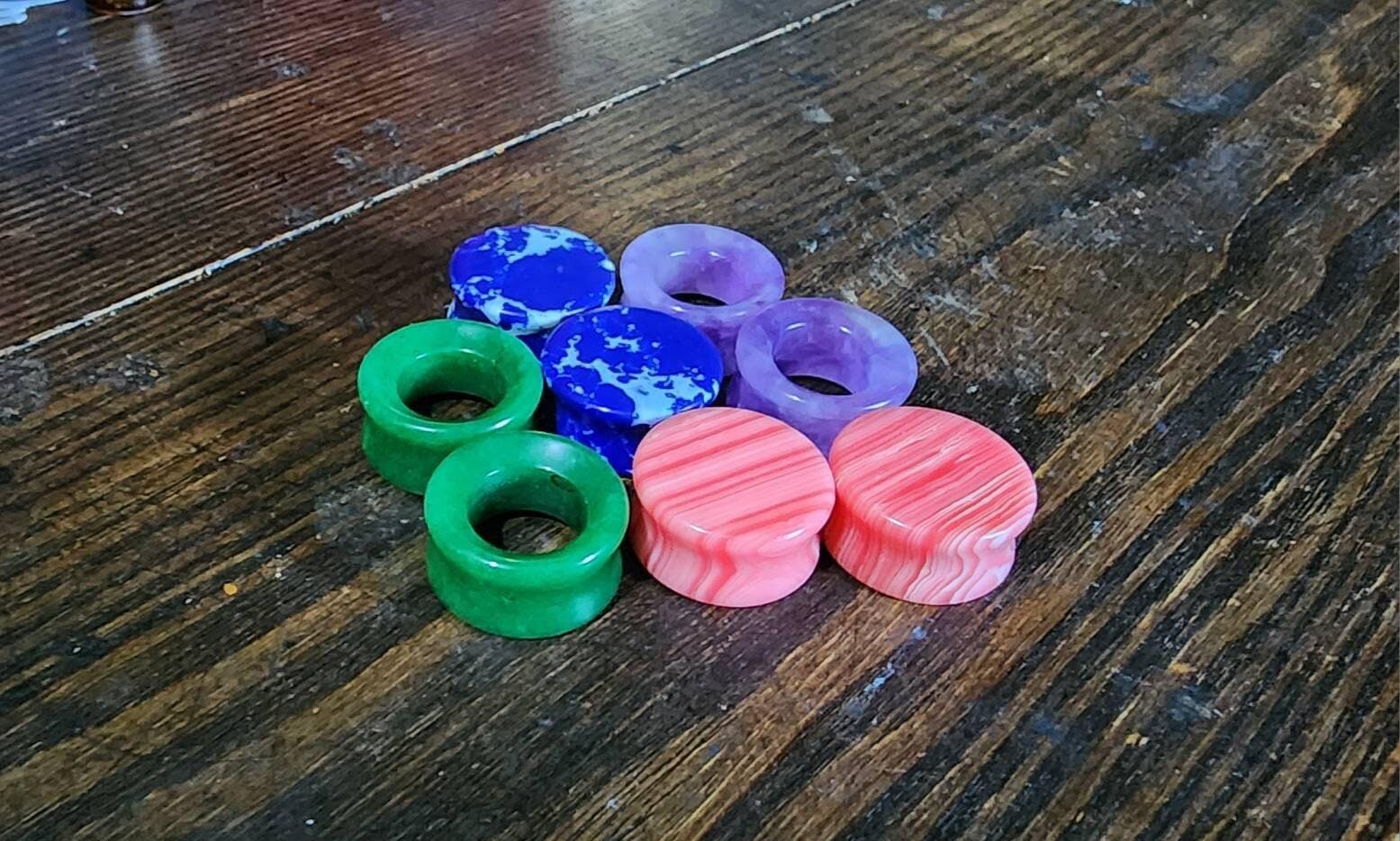 PAIR of Stunning Red Lace Agate Stone Double Flare Plugs - Gauges 2g (6mm) thru 1" (25mm)
