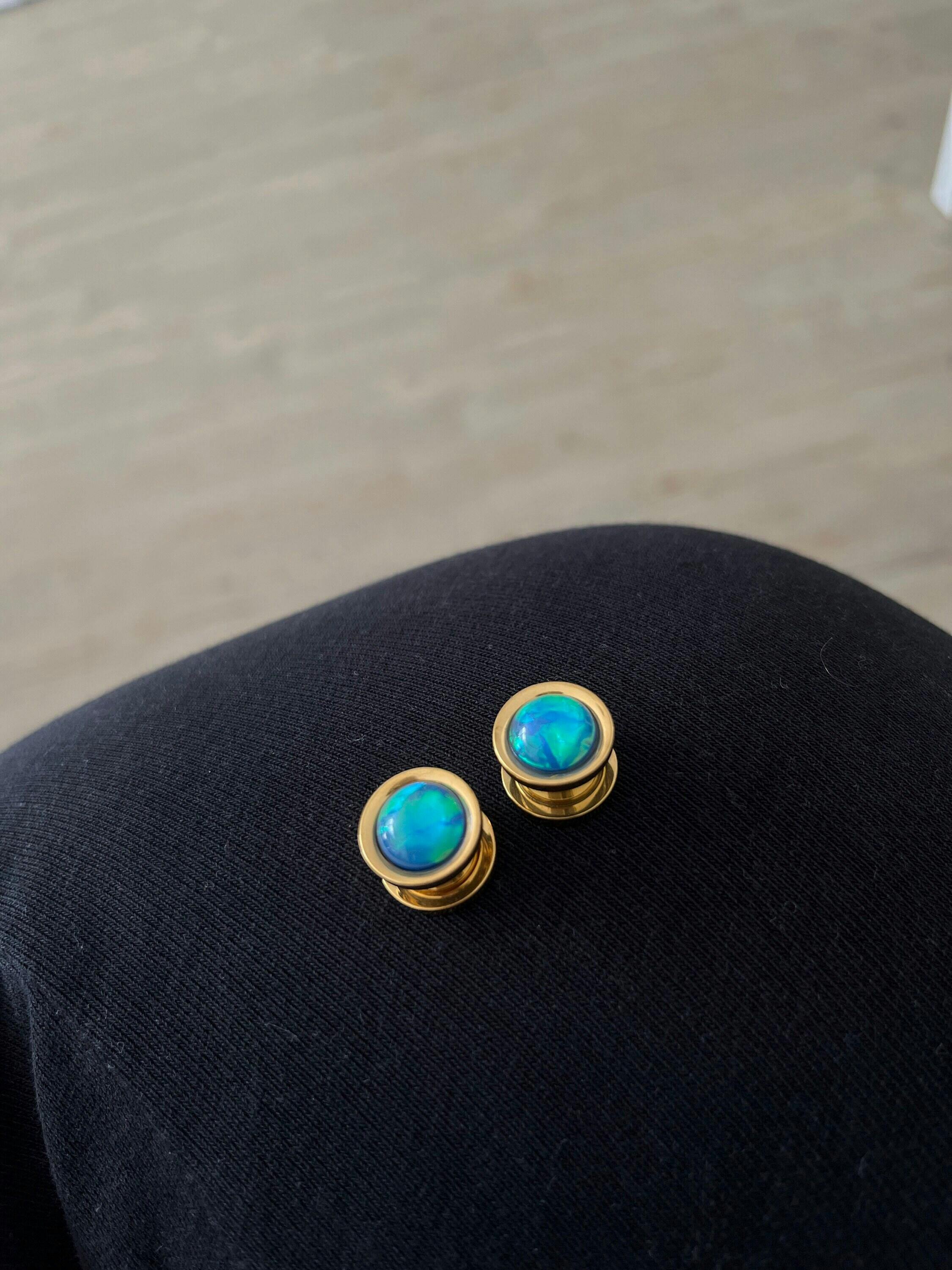 Synthetic Blue Opal Gold Screw Fit Tunnels