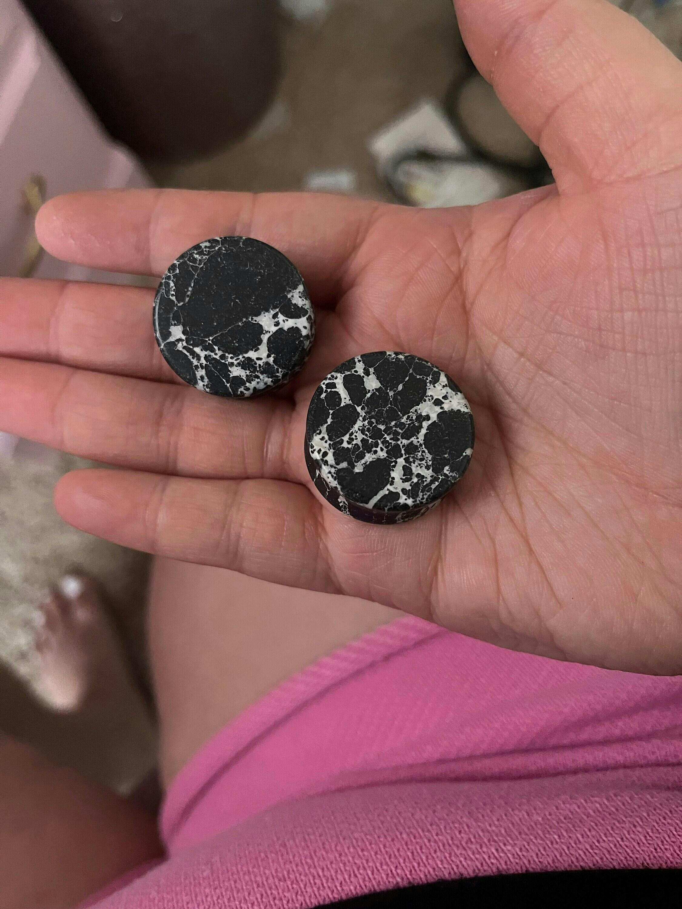 PAIR of Unique Black & White Synthetic Imperial Turquoise Double Flare Tunnels/Plugs