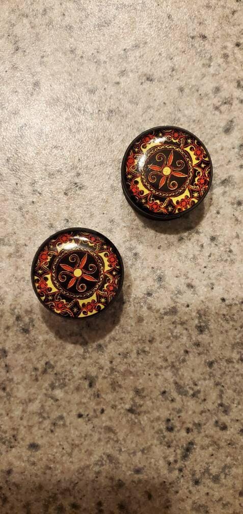 PAIR of Unique Printed Celtic Pattern Inlay Organic Ebony Wood Saddle Plugs - Gauges 2g (6mm) up to 1" (25mm)