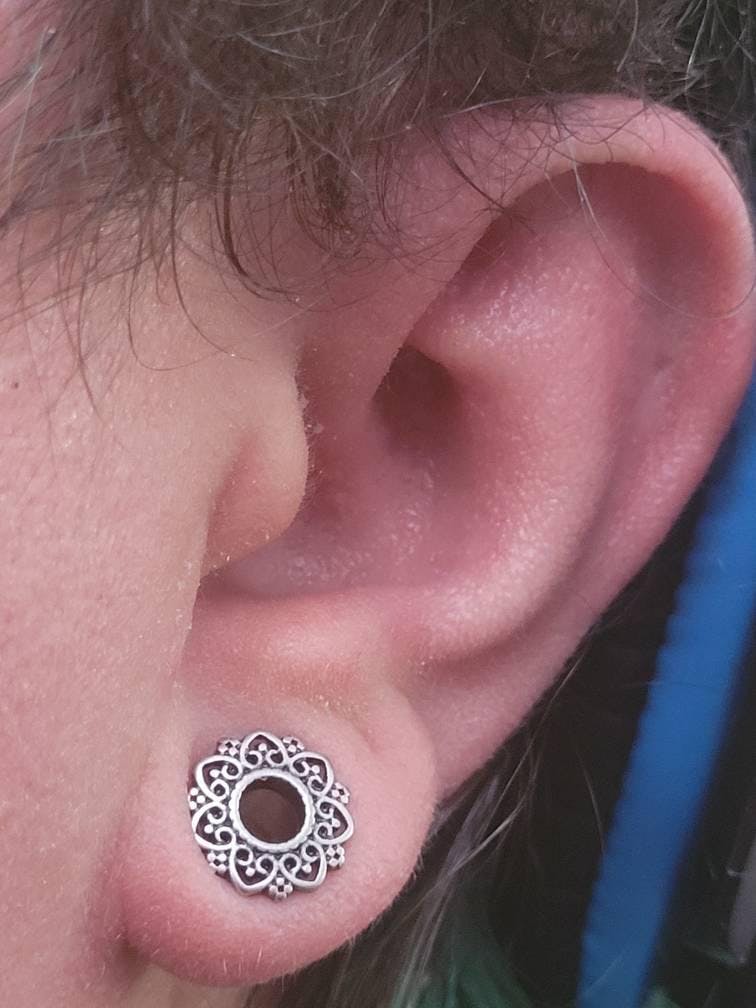 PAIR of Tribal Heart Filigree Screw Fit Tunnels