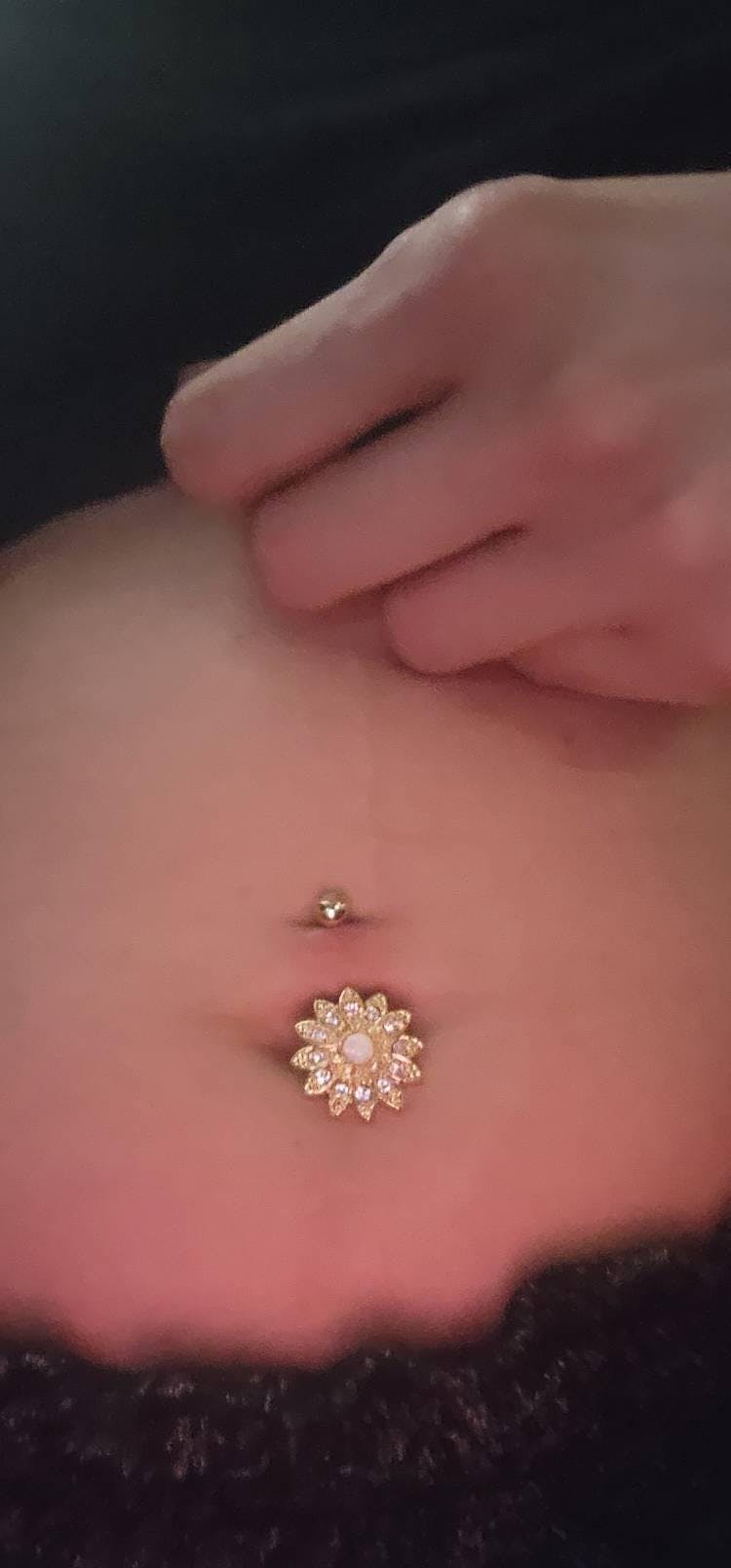 Paved Gems Flower with Center Opal Belly Ring - Choose your color from the above drop down menu