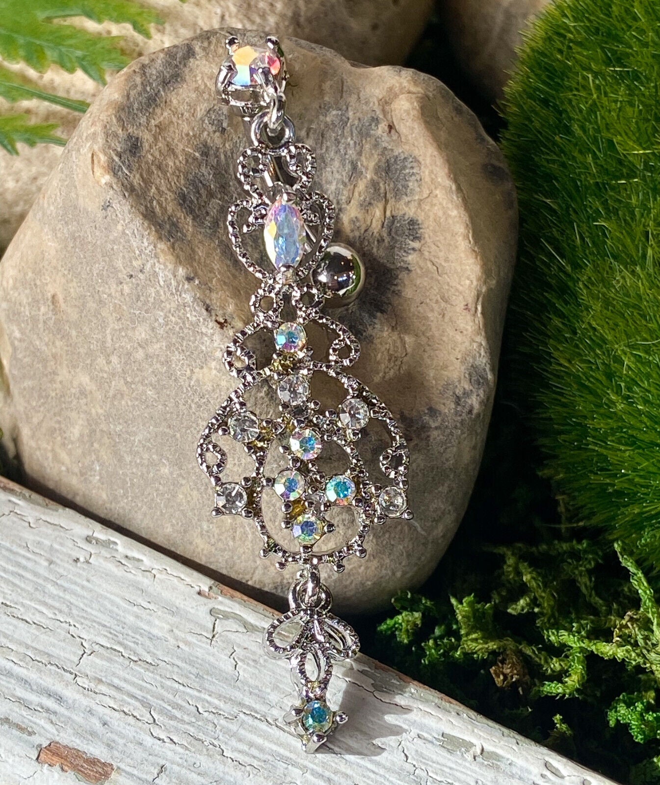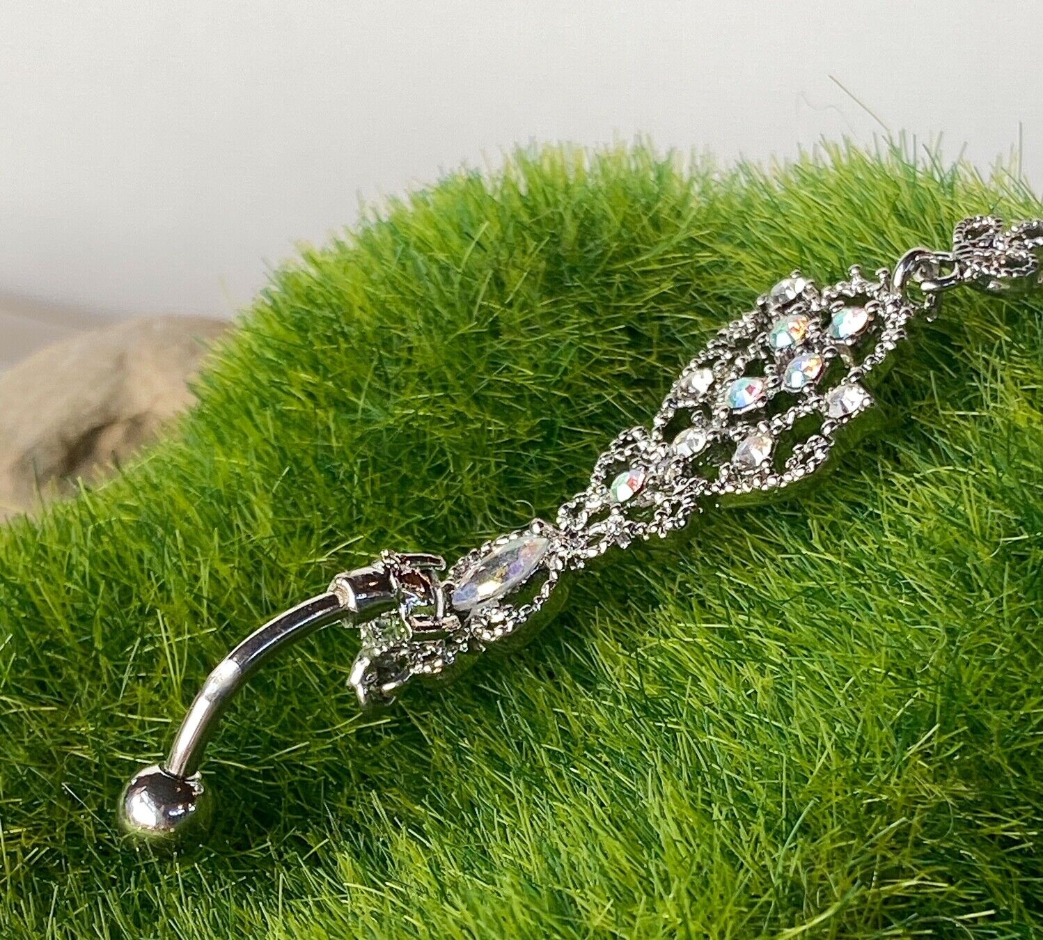 Reverse Chandelier CZ Gems Belly Ring - Select color from the above drop down menu