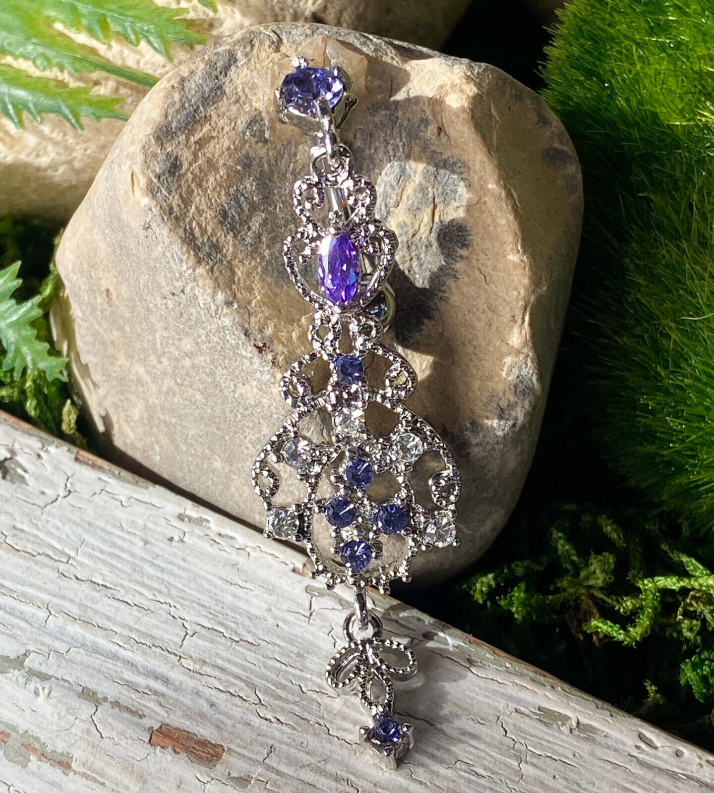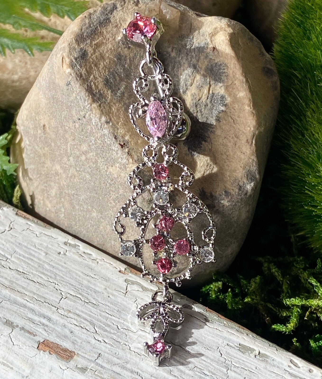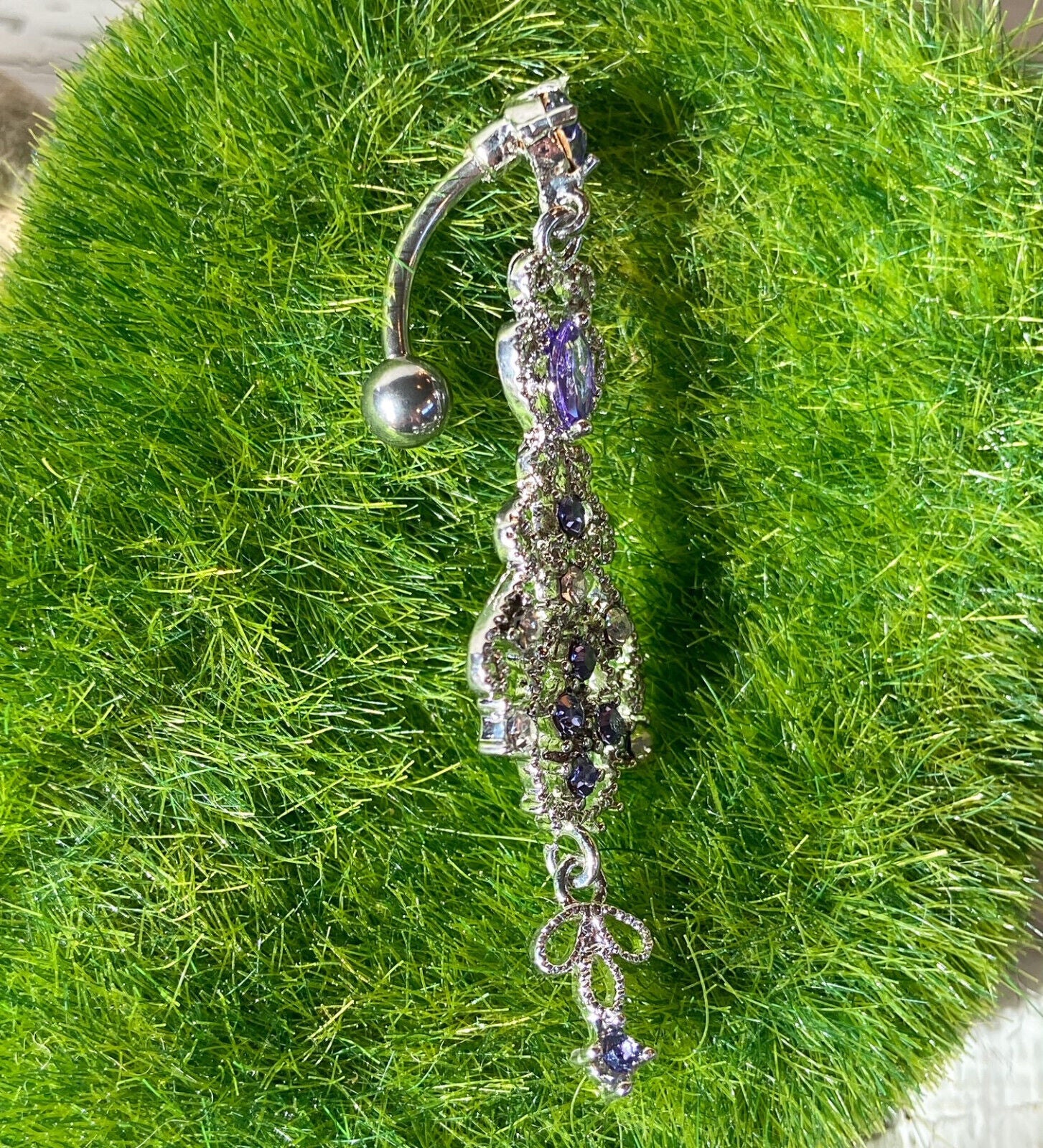 Reverse Chandelier CZ Gems Ring Navel Naval Aurora Borealis, Pink, Tanzanite