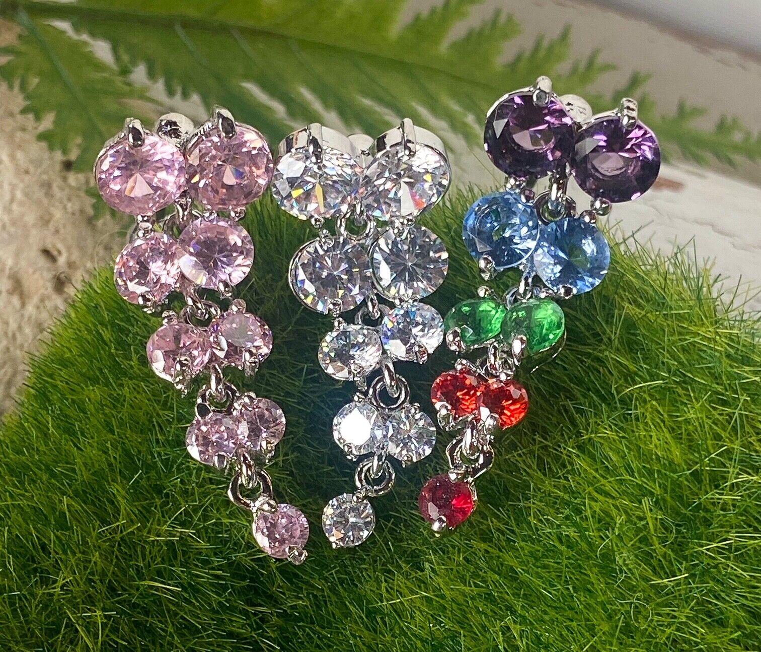 Reverse Chandelier Multi Gem Belly Ring Navel Naval Clear, Pink, Rainbow