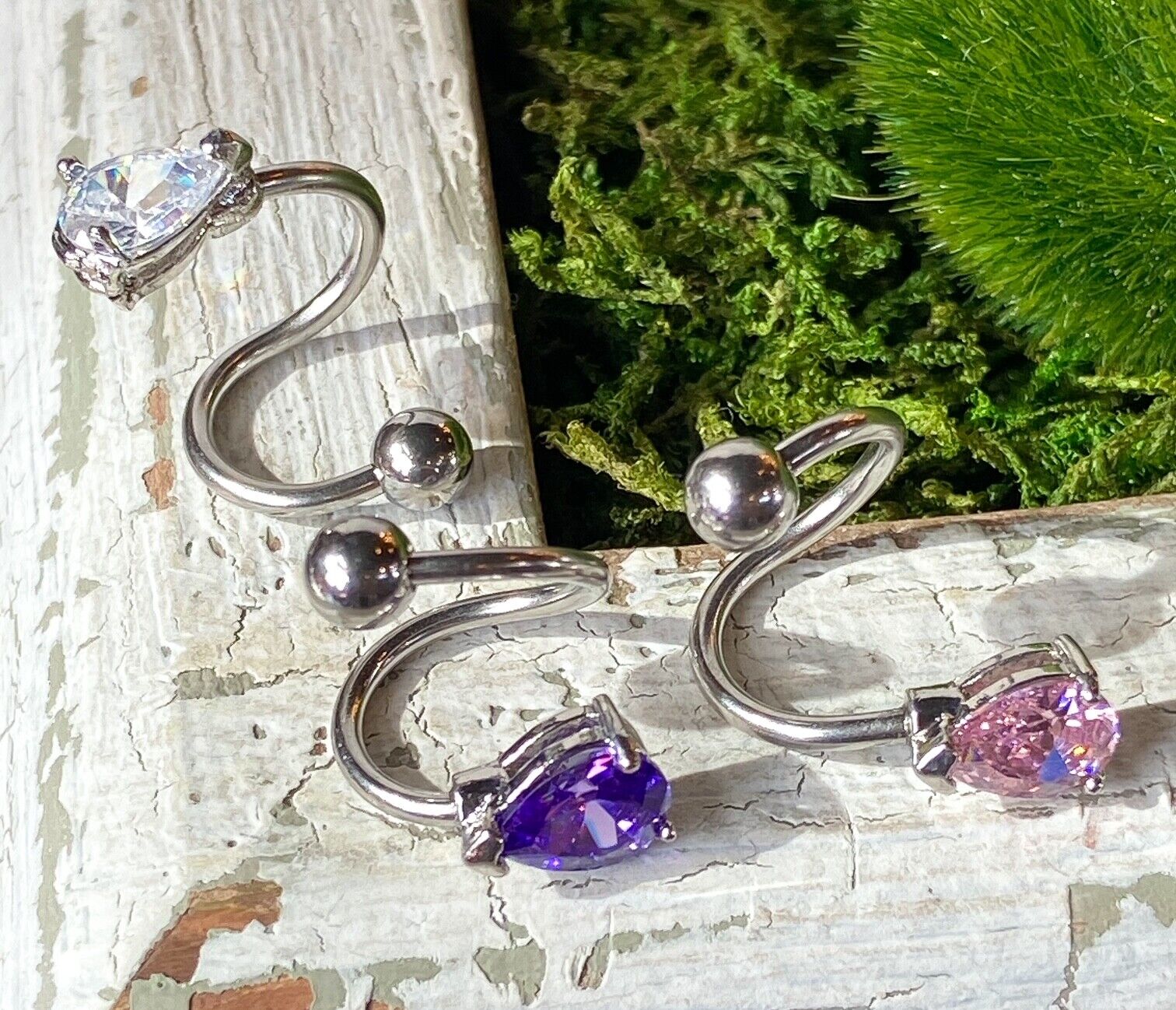 Teardrop Twist CZ Gem Belly Ring Navel Naval Clear, Pink, Purple